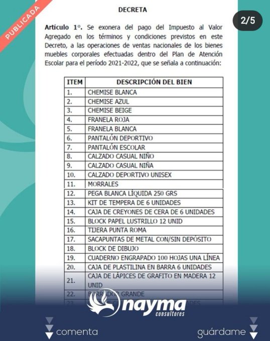¿Escuchaste que los útiles escolares están exentos de IVA? La publicación del Decreto 4600 el 11/10/2021 está detrás de esa exoneración. Este decreto, que estará vigente por un año, exonera de IVA e ISLR a las ventas nacionales de los bienes muebles corporales efectuadas dentro del Plan de Atención Escolar para el período 2021-2022.