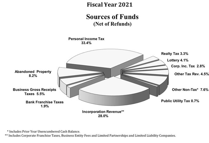 Esta atracción de sedes sociales ha sido tan beneficiosa para el pequeño estado de Delaware , que los ingresos generados por el franchise tax y otros tributos que pagan las sociedades registradas en Delaware alcanzan el 28% del presupuesto estatal.
