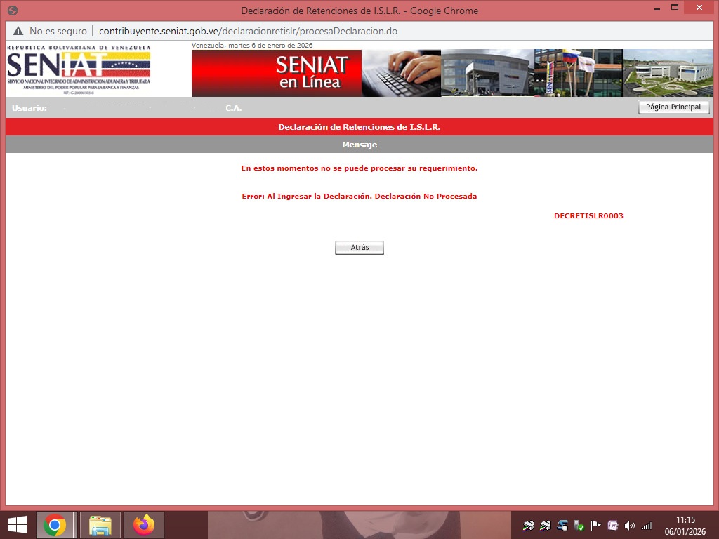 También puede ocurrir que ciertos módulos de declaración en el portal fiscal del SENIAT presenten fallas, aun cuando el acceso general al sistema esté disponible y otras declaraciones puedan procesarse con normalidad. En otras palabras, pueden generarse errores al momento de tramitar determinadas declaraciones tributarias.